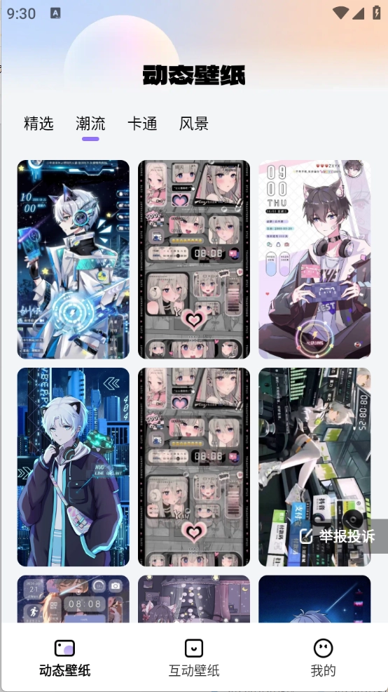 2、进入 “动态壁纸” 页面,可浏览包含卡通、潮流、风景等多种风格的壁纸资源,挑选心仪类型。