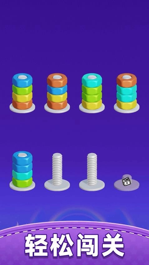 《螺丝消除馆》是一款超有趣的休闲益智闯关游戏。在游戏里,你得找出相同颜色的螺丝,再按照特定规律把它们移动到对应的螺丝钉上,完成分类任务就能达成理想的挑战目标。这种玩法看似简单,实际操作起来却乐趣十足。尽情挑战更多关卡,不仅能在过程中收获满满的快乐,还能逐步发现游戏里的关键规律,挑战时更有贴心提示助力。游戏界面设计得十分简洁,没有多余的干扰元素,玩家能快速捕捉到解谜的突破口,轻松规划出移动方案。要是你也对这款游戏感兴趣,那就快来试试吧!