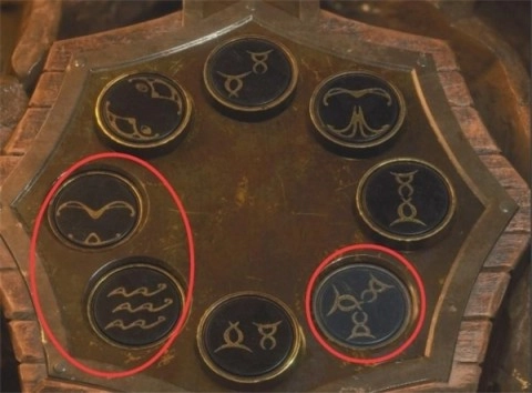 3、继续前进至左侧窗户边,也可以找到一个组合的按钮图案。
