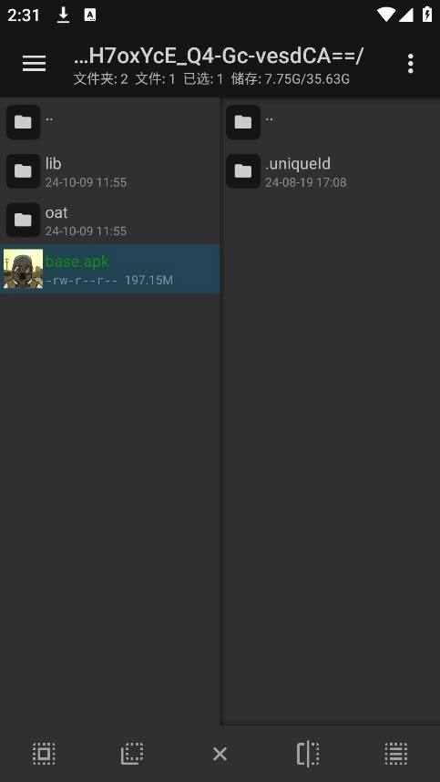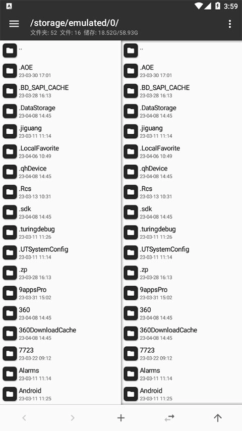 打开MT管理器后第一眼看到的就是它的左右两个操作窗口,该设计已经是MT的标志之一,与之对应的是双窗口操作模式。如果你是第一次使用,开始会不太适应,但相信我,等你花点时间来熟悉它后,你的操作效率会大大高于使用其它文件管理器。