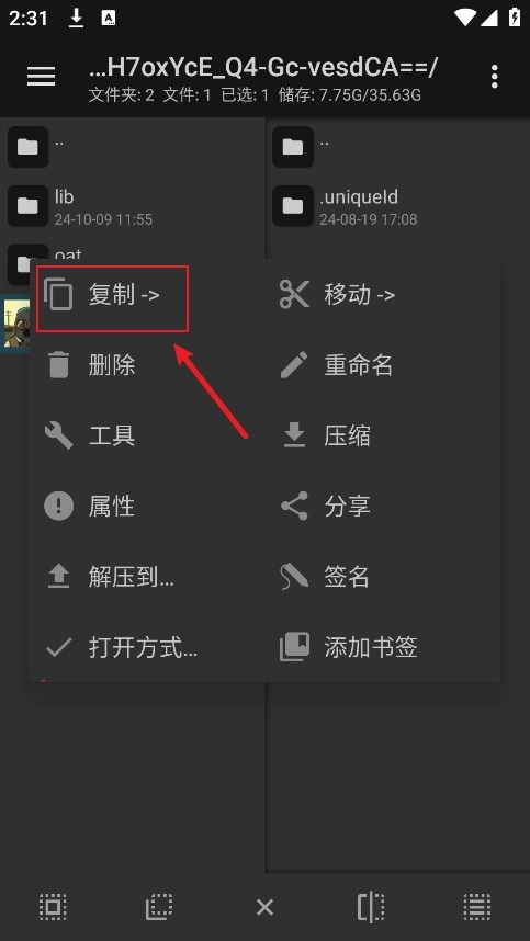 存储与书签功能:从侧边滑出侧栏,即可看到存储器和书签选项。点击对应的存储器,能快速进入根目录、内部存储或外置存储等位置。书签需自行添加,请注意,只有在添加书签后,侧栏中才会显示书签分组。