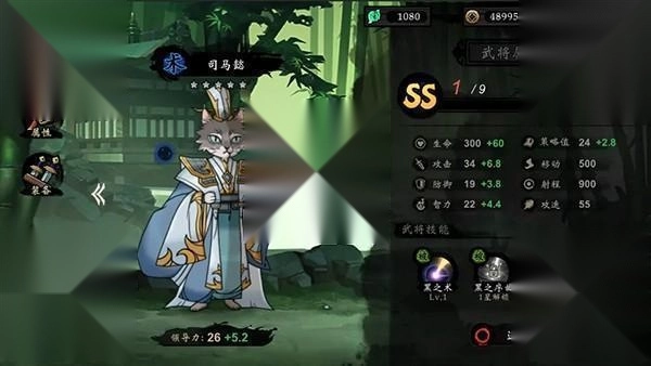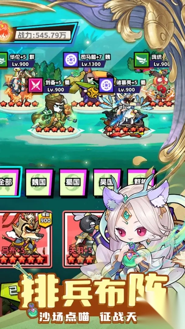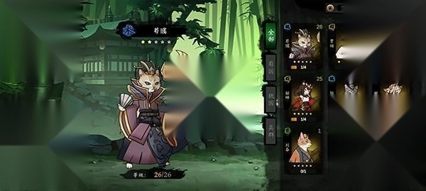 4、拥有丰富的武将卡牌,可以收集和培养各种猫武将,每个武将都有独特的技能和属性。