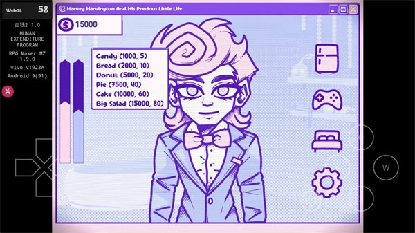 2、正式开始后点击冰箱可以消耗金币给哈维买吃的,不同的食物会恢复哈维的体力。