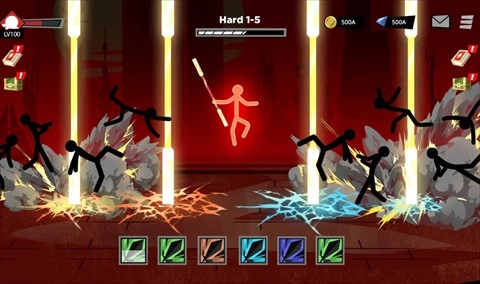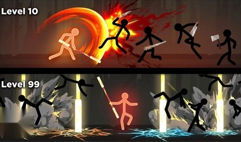 3、与敌人战斗,升级并解锁其他的火柴人英雄。