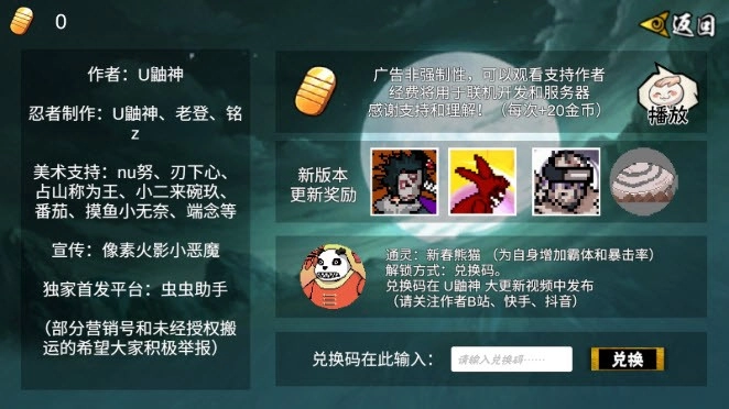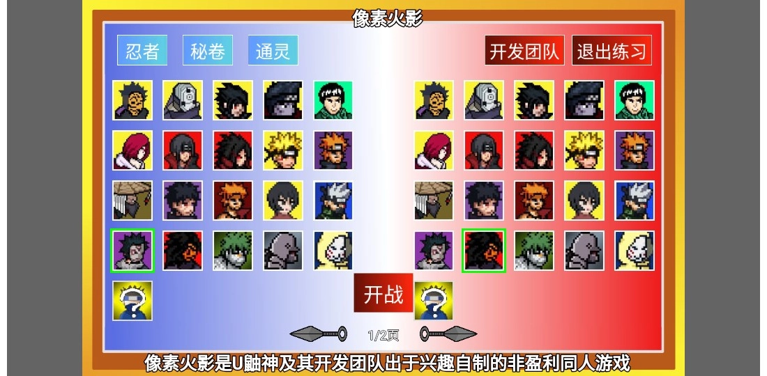 3、像素风图形打造的帅气忍者,操控他们与其他动漫角色展开激烈格斗。
