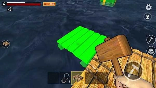 3、使用收集到的材料和道具,逐步扩展和升级你的木筏,提升生存能力和防御力。