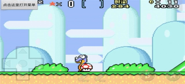 2、左侧的摇杆控制移动,右侧A键进行跳跃,拾取蘑菇之后点击B键即可射击。