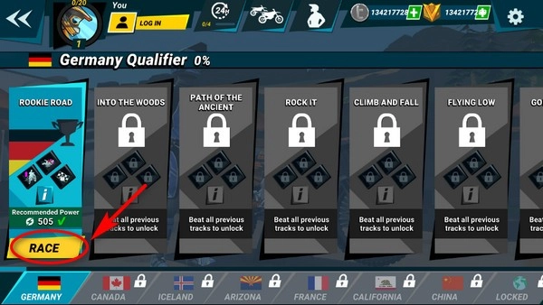 2、选择赛道,然后按RACE就开始匹配对手了。