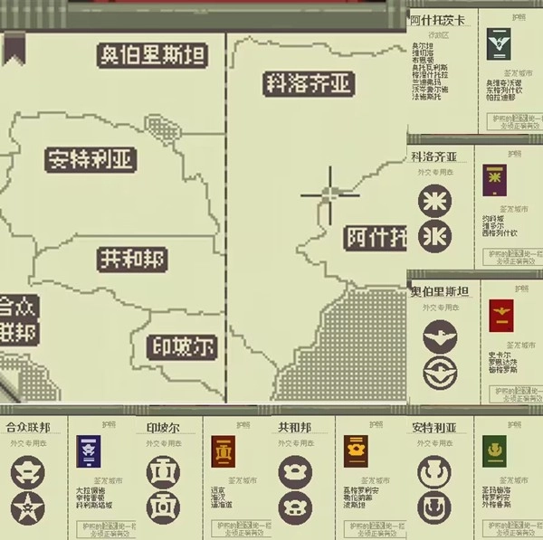 7、其中“阿什托兹卡”是我们的背景城市,其他皆为外国入境城市。那么外国入境城市是没有行政区的,他们有外交专用章,所以国家签证上会印有相应的LOGO图案,如不符合,则为伪造(如大爷)。
