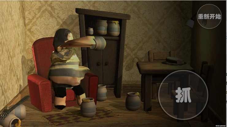 目前,玩家的目标就是想方设法将焖子送到人物的嘴里。在操作方面,游戏的灵敏度非常高,稍微滑动一下,手臂就会转上两三圈,玩起来感觉非常别扭。此外,游戏内的抓取机制存在很大问题,明明就在旁边的东西,却硬是抓不到。