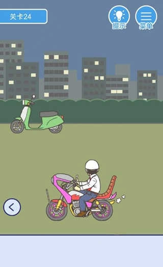 24、归途:剧情推进后抵达公园,在第二场景拾取白色头盔安装到摩托上,主角骑车出现,向左移动接上老板娘,二人一同返家,温馨收尾;
