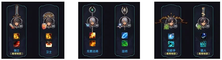 近战物理输出定位,既能转职成近战能力更突出的爆发狂战士,也能转职为攻击高、血量厚的守护重装卫士。
