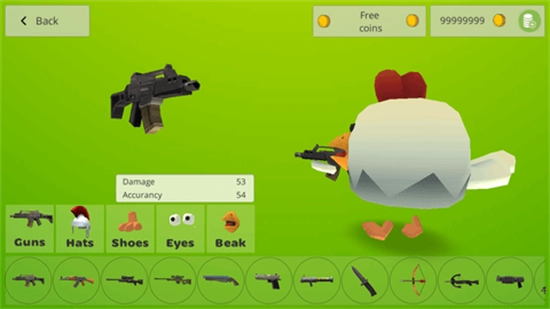1、化身软萌小鸡,在轻松氛围中击败敌人,收集金币来升级自己的武器。