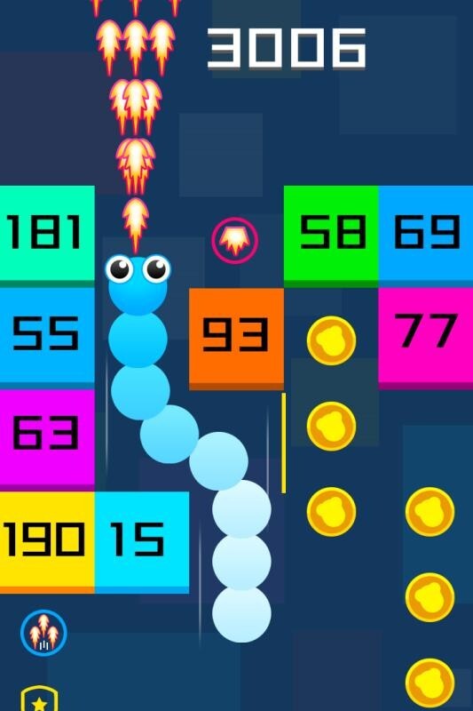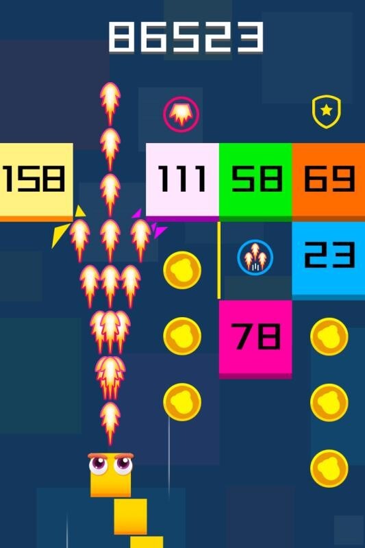 这是一款射击方块类的休闲游戏,玩家要操控能吐出火球的蛇蛇,持续攻击方块,让方块上的数字逐步减到零。