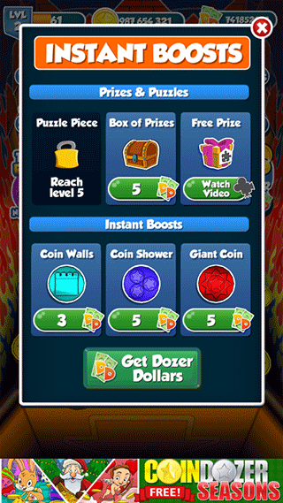 金币推土机是一款休闲推金币游戏,采用卡通风格制作,画面精致,操作简单。玩家只需投掷金币即可进行游戏,轻松上手,能从容应对各种挑战,感兴趣的玩家不妨一试。