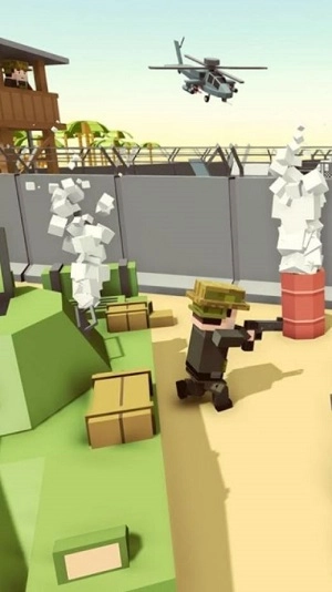 3、玩家一般会置身于块状的陆军基地场景里。要完成任务,就得瞄准并消灭战场上所有的块状敌人。