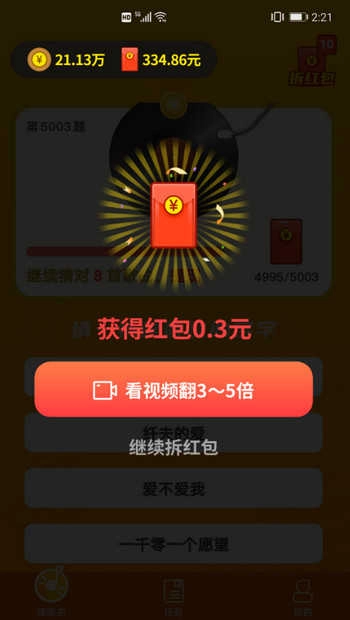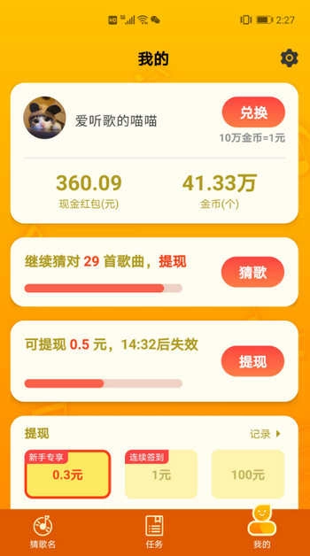 1.猜歌大全的玩法极具挑战性。每日挑战参与答题的人很多,红包采取先到先得的规则;