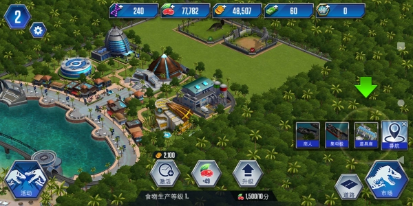 5、给予玩家充分的自由来规划和建设自己的侏罗纪公园,这里所有的一切都是由玩家自己来掌控的。