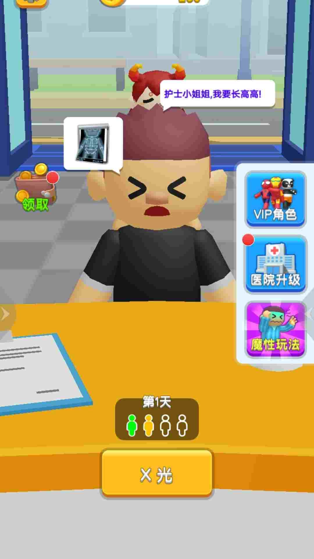 2、根据诊断结果选择对应治疗方式,治疗成功后病人会恢复健康并给出好评,解锁医院升级材料。