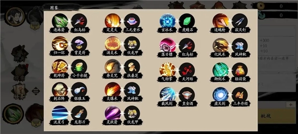 5、图内技能俗称法宝+装备构成,主法宝7以后+任意1法宝合成超武。图没有效果介绍。初始无脑选涌炎术,关卡现在做到合体后期了,刷一把1万+铜币+炼丹药材!所以尽量推到你能推到的最高图,再回来刷实力能过的,过不了图没有奖励。