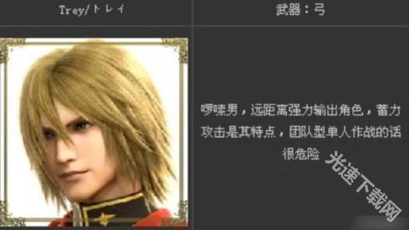 2、托雷Trey:作为弓手,他的攻击力在三个远程角色中是最高的,防御力也是最高的。凭借较远的攻击距离,只要能和敌人保持好距离就能实现完美输出,是个比较考验操作的角色。