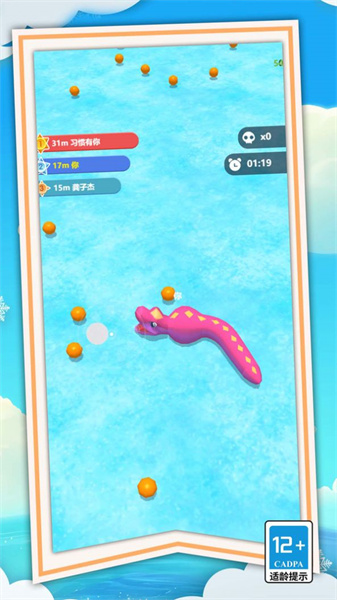 玩家将操控自己的小蛇在地图里移动,不断吞食食物来快速成长变强,和其他贪吃蛇进行对抗,避开它们的攻击,努力存活下去,还有丰富的皮肤选择和玩法等着玩家去体验。