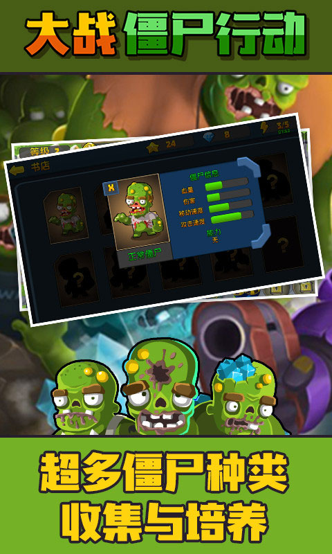 《大战僵尸行动》是一款以僵尸为题材的射击游戏,其全称为《大战僵尸行动争霸赛开启》。游戏采用先进的物理引擎打造,将2D画面制作得十分精良,每个角色都刻画得生动鲜活,为玩家带来极具冲击力的视觉体验。在玩法方面,游戏借鉴了《植物大战僵尸》的经典模式,并在此基础上进行了创新设计,让玩家既能重温经典的乐趣,又能体验到新颖玩法带来的畅快感受。