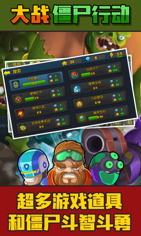 2、击败僵尸能够获取资源奖励,利用这些资源可以招募更多强力的兵种;