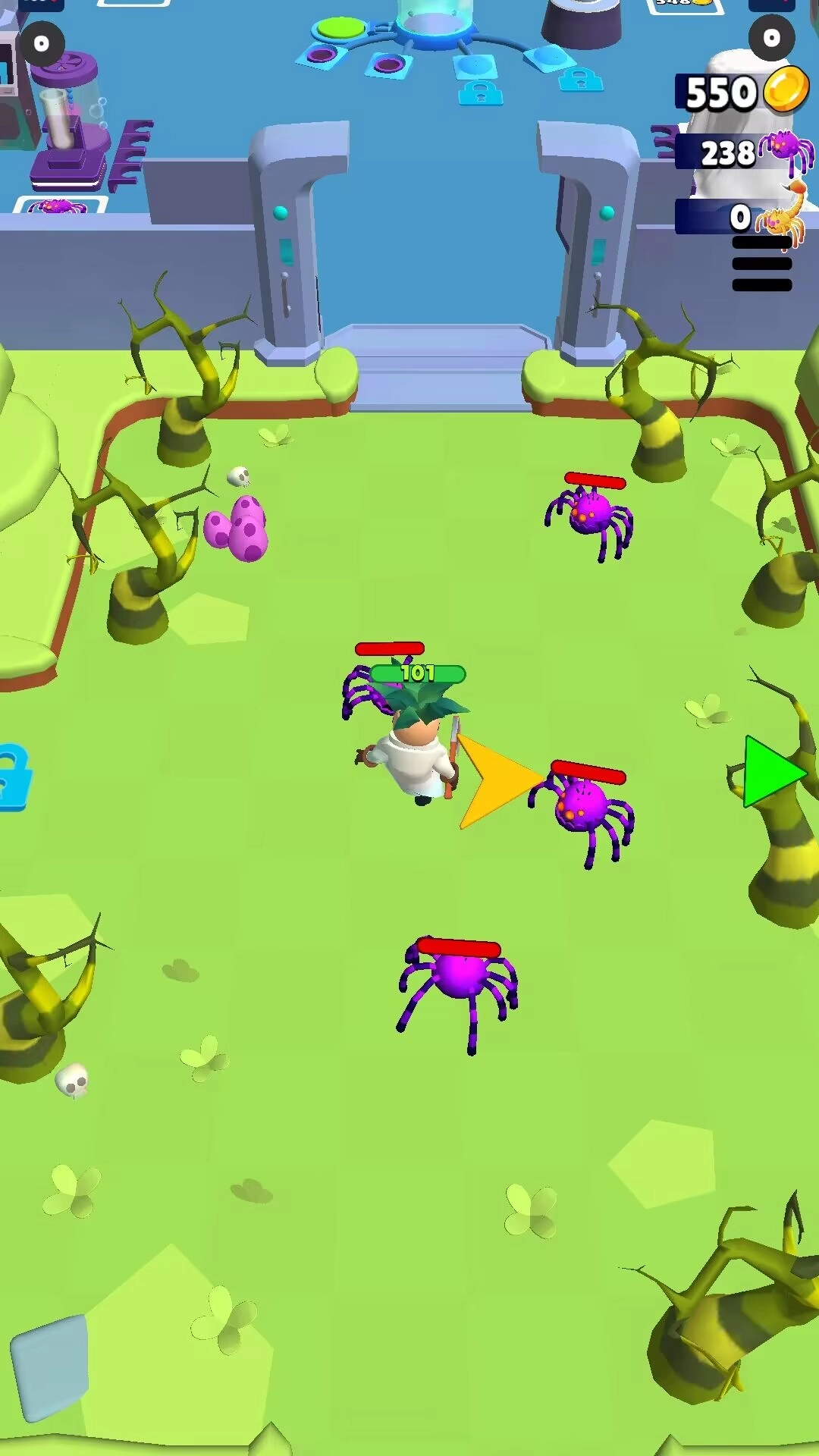 4、进入斗争之后,点击箭头指的方向就可以开始战斗了。