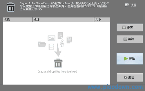 Super FileShredder是一款具有国防级别的安全工具,可以彻底删除电脑里面的文件,无法被恢复,符合美国国防 US Dod 5220.22-M 标准。 Free File Shredder 界面简洁,支持拖拽操作,还提供其他删除文件的安全标准。