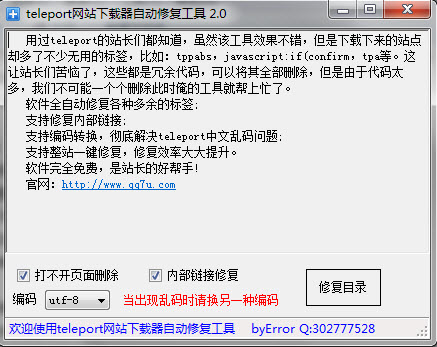 用过teleport的站长们都知道,虽然该工具效果不错,但是下载下来的站点却多了不少无用的标签,比如:tppabs,javascript:if(confirm,tpa等。这让站长们苦恼了,这些都是冗余代码,可以将其全部删除,但是由于代码太多,我们不可能一个个删除此时俺的工具就帮上忙了。
