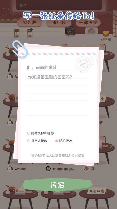 v1.3.51. 自习室园区新增了宣传栏和许愿树;2. 创建私人自习室时无需设置密码;3. 伙伴们现在可以在私人自习室内留言;4. 可以给好友添加备注了;5. 修复了一些漏洞。