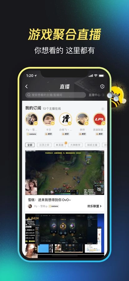 3.【多平台直播聚合,斗鱼虎牙一站观看】聚合虎牙、斗鱼、企鹅电竞三家平台游戏直播,这里有你想看的所有热门主播/游戏!同时与WeGame PC端直播订阅互通,PC端看不够,移动端接着看~