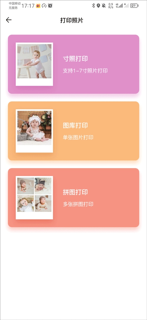 1、在app首页中,选择你要打印的服务,例如打印照片