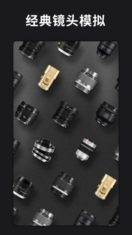 2、多款经典单反相机镜头,如50mm 1.4定焦镜头、折返镜头、宽银幕变形镜头、旋焦镜头。