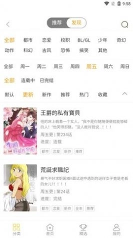 1. 个性分类,智慧搜索 分类涵盖题材,精选和作者3种方式,个性化推荐满足漫迷们的挑剔口味;特有的智能搜索引擎,海量关键词汇搜索引导,不再让好漫画轻易从指尖错过!
