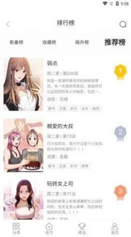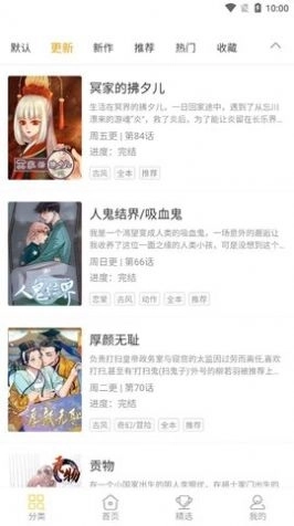 3. 接口清新,操作人性化 软件风格简约时尚,重点突出,上手容易,让你轻松进入漫画世界!新版书架更能让您轻松管理喜爱的书籍,阅读和追新不再繁琐。
