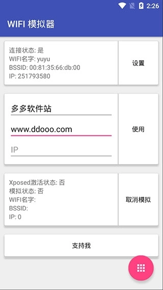 这是一款由个人开发者打造的WiFi信息模拟软件,能够自定义手机连接的WiFi名称、BSSID和IP地址。这样用户就能通过该软件模拟其公司WiFi的信息,即使在家也能满足打卡需求。此外,这款WiFi模拟器既是手机应用程序,也是Xposed框架的一个模块,因此用户需预先安装好Xposed框架或太极框架才能使用。