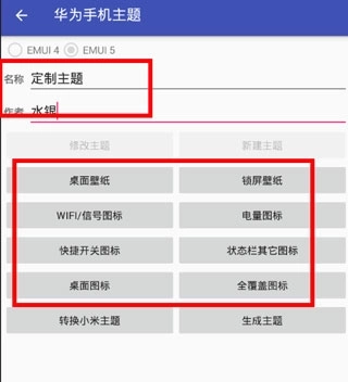3、输入主题的名称和作者名,就可以来编辑设置自己喜欢的主题图标了。