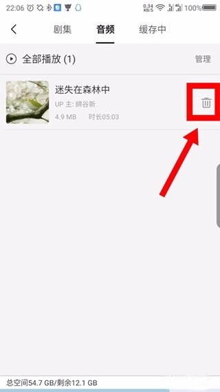7、如果想删除下载的音频,可以点击后面的垃圾箱图标;