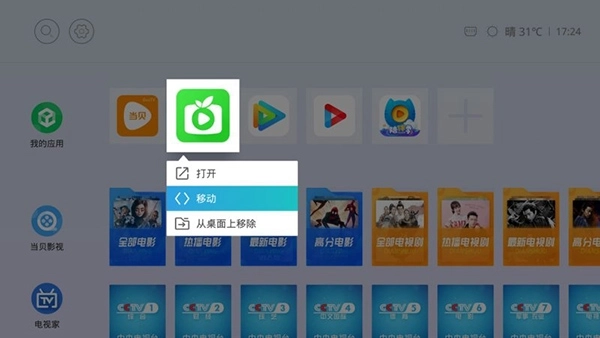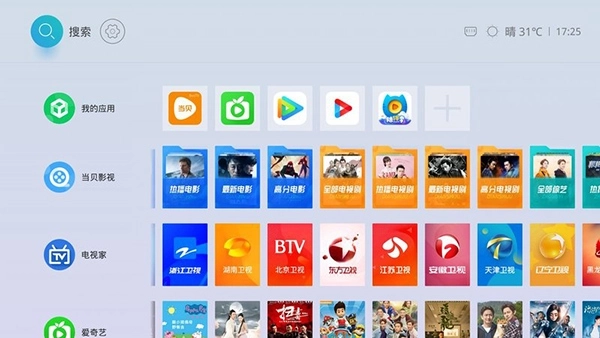 这是一款全新设计的智能电视桌面软件,专为大屏安卓设备打造,具有极简风格的用户界面,显示效果舒适,交互体验优秀,且没有任何广告干扰。它可以完美替代原生系统桌面,提供最佳的使用体验。其一大特色是能够快捷访问电视软件中的各个功能模块,支持电视家、当贝影视、应用市场、优酷视频、腾讯视频等热门应用。此外,主界面上方还展示了当前时间、天气和网络连接状态,方便用户迅速了解即时信息。