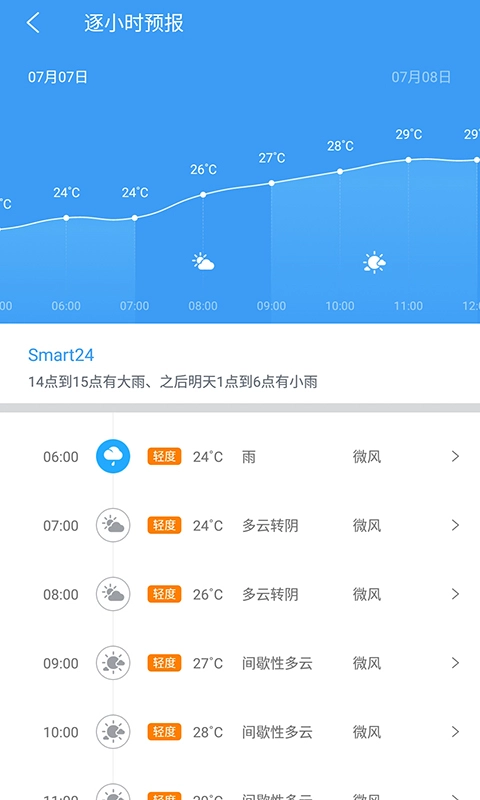 5、基于精准定位的逐小时预报和分钟级降雨预报