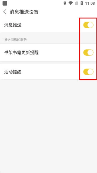 4、点击“消息推送”按钮圆点。