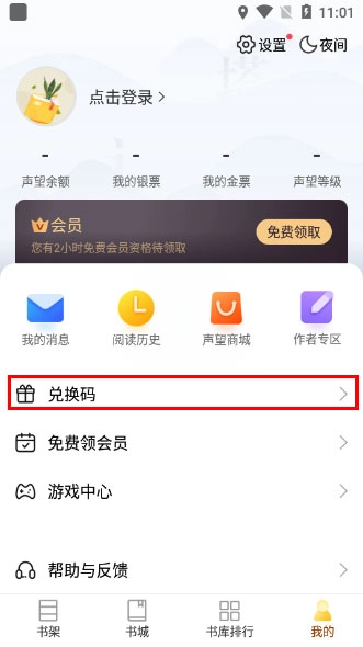 2、点击“兑换码”。