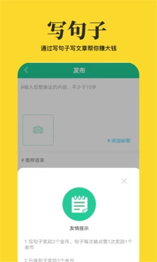 4、【金币兑现】发布短句赚取金币,用你的金币兑现你的才华