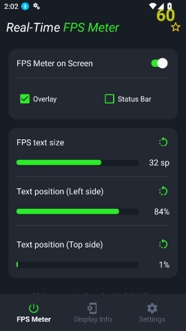 fps meter免root版使用过程中无需root权限,用户只需要下载打开就能够立即使用,这款工具可以帮助用户在游戏的过程当中实时检测fps的情况,保证游戏的稳定运行,需要的朋友快来试试吧!