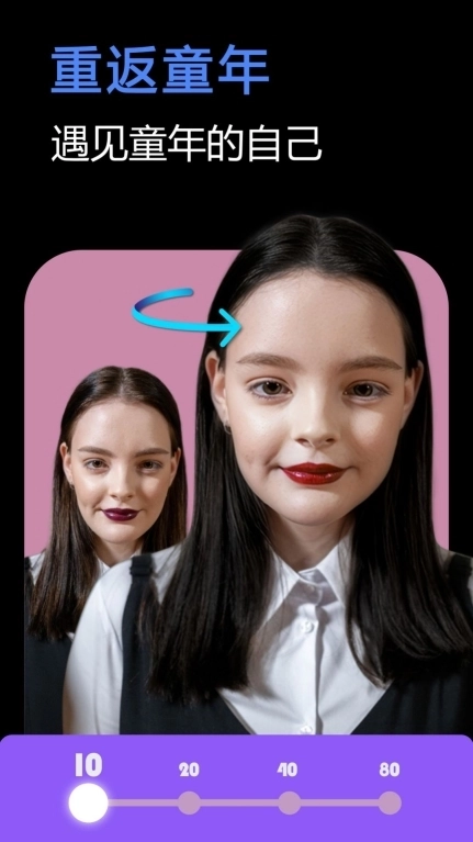 时光机器:用户可以通过“时光机器”特效看到自己不同年龄段的样子,比如遇见童年的自己或看看80岁的样子。