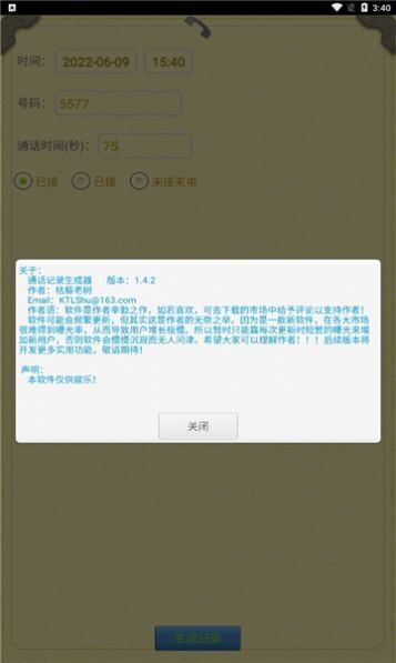 3、使用起来非常方便。 通话记录生成器app使用该软件,可以直接生成任意指定号码的通话记录。