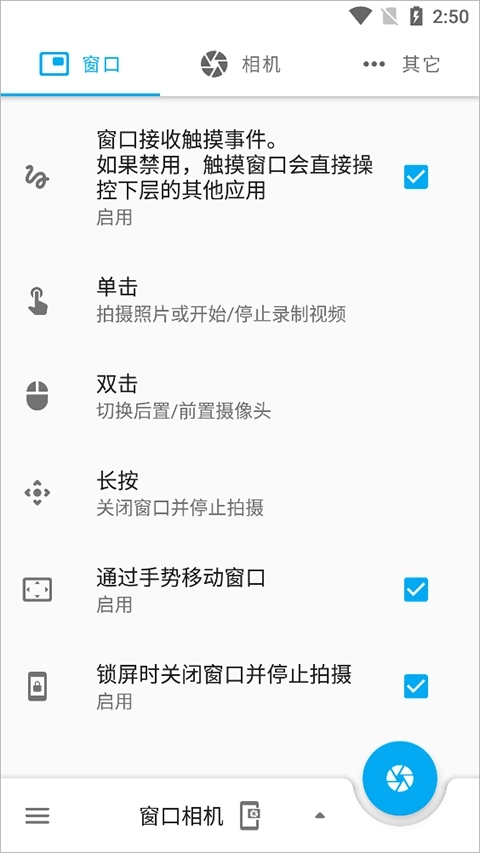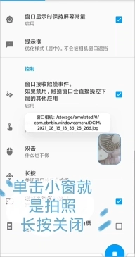 7、这边还能够设置“单击、双击、以及长按”,单击小窗就是拍照、长按是关闭。