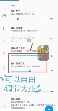 4、在这里可以自由调节窗口水平位置以及窗口垂直位置,用户完全是可以根据自己的需求进行选择,甚至还能够调整窗口的大小以及走可以调节窗口透明度。